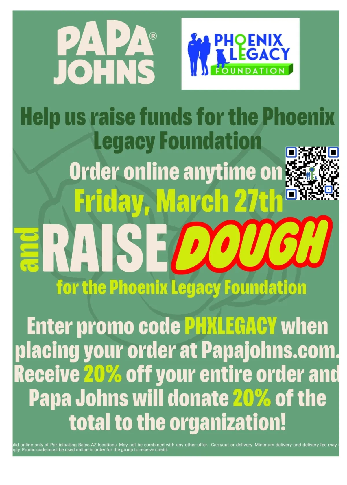 We Get: Papa Johns donates 20% of your total to our foundation!